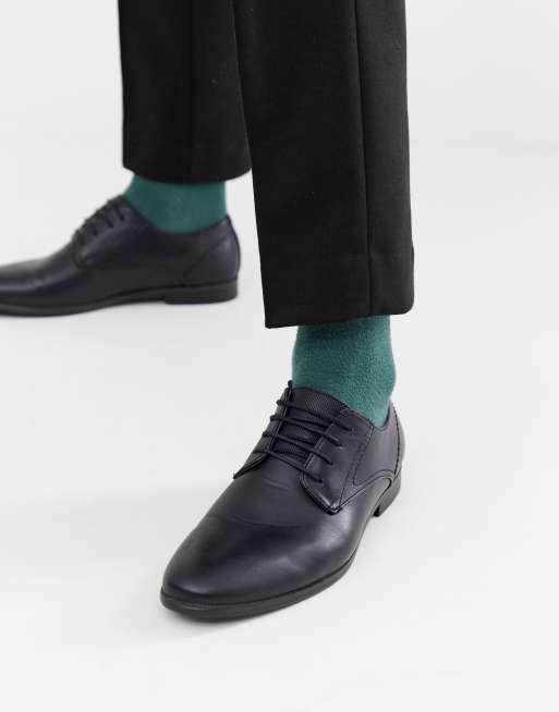 Burton Menswear Leather Derby Shoe In Black Asos