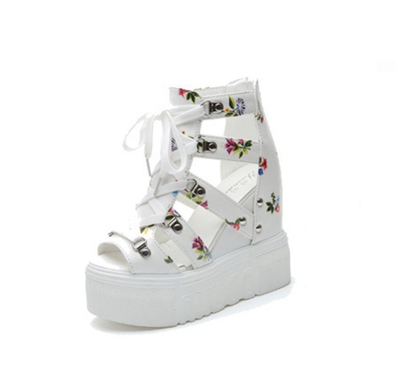 Bezove Damske Letni Sandaly S Motivem Kvetu Na Vysoke Platforme