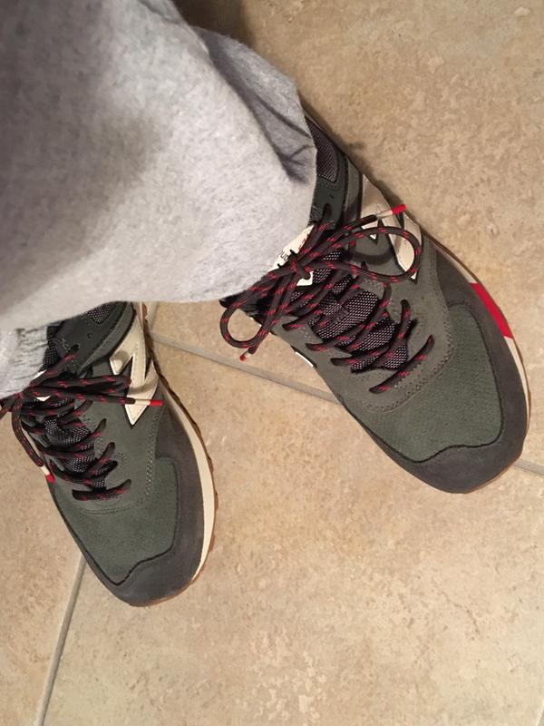 New Balance 574 Black Velocity Red Suede Trainers Shoes Awesome Shoes