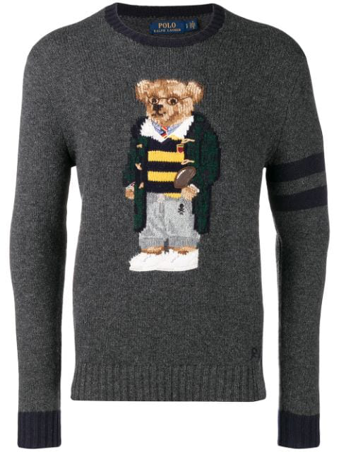 Polo Ralph Lauren Polo Bear Intarsia Wool Sweater In Grey Modesens