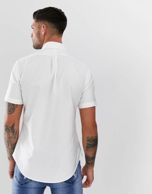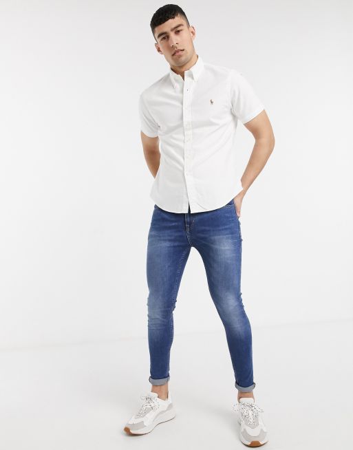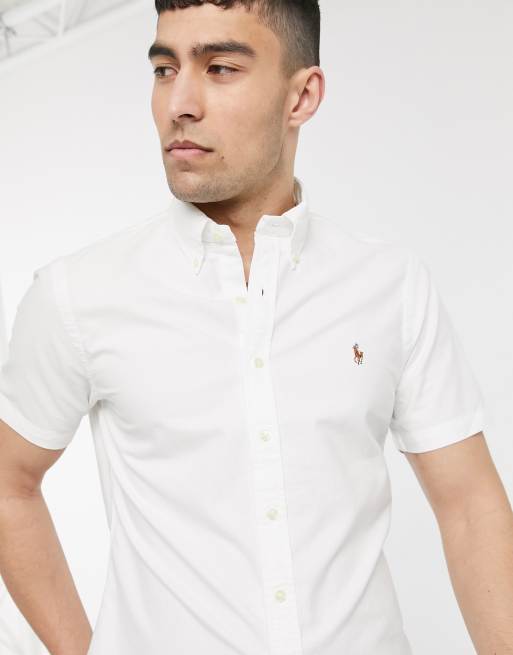 Polo Ralph Lauren Short Sleeve Oxford Shirt Slim Fit Multi Player Logo In White