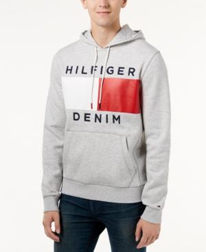 Tommy Hilfiger Denim Men S Brooks Logo Print Hoodie In Light Grey
