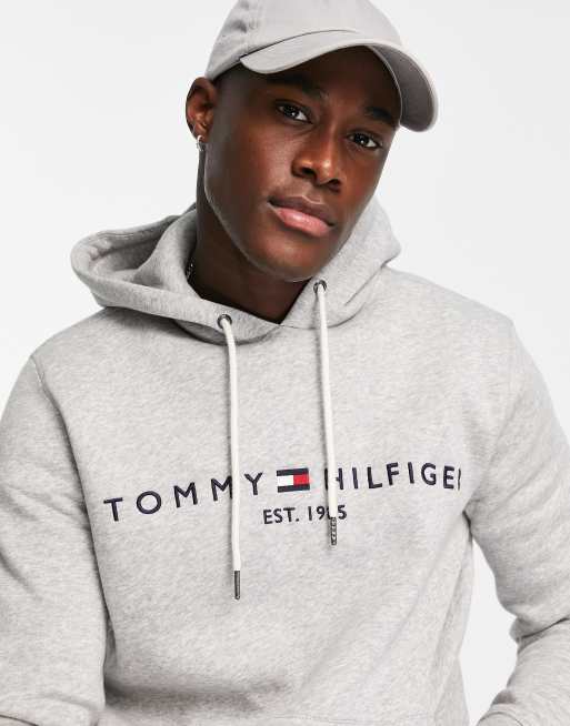 Tommy Hilfiger Embroidered Flag Logo Hoodie In Grey Marl Asos