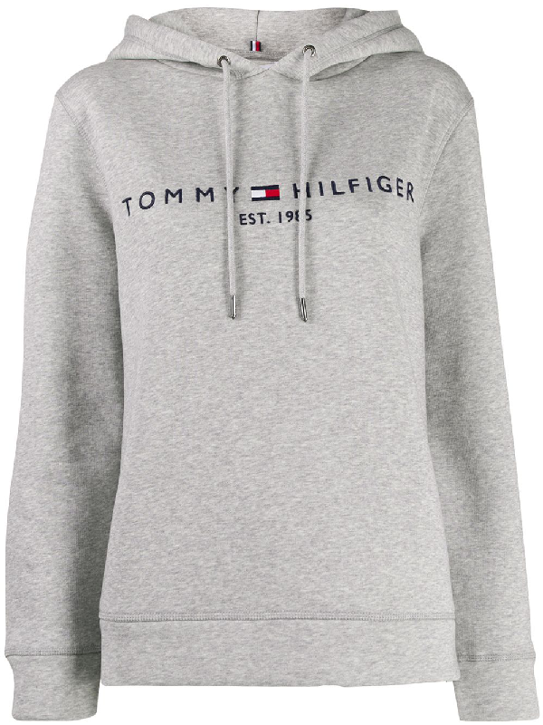 Tommy Hilfiger Embroidered Logo Hoodie In Grey Modesens